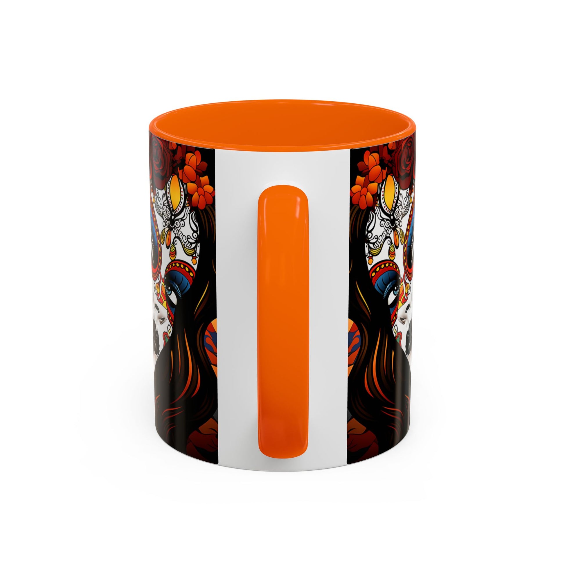 Vibrant and funny dia de los muertos design accent coffee mug that adds a pop of color to your morning routine. Perfect for those who enjoy unique and humorous designs. Relevant for Dia de los Muertos celebrations and coffee lovers.