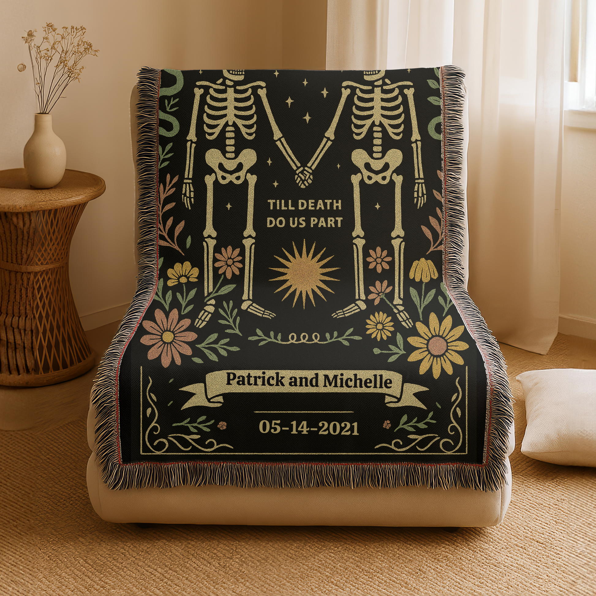 Skeleton Couple Blanket 'Til Death do us Part' Woven Tapestry