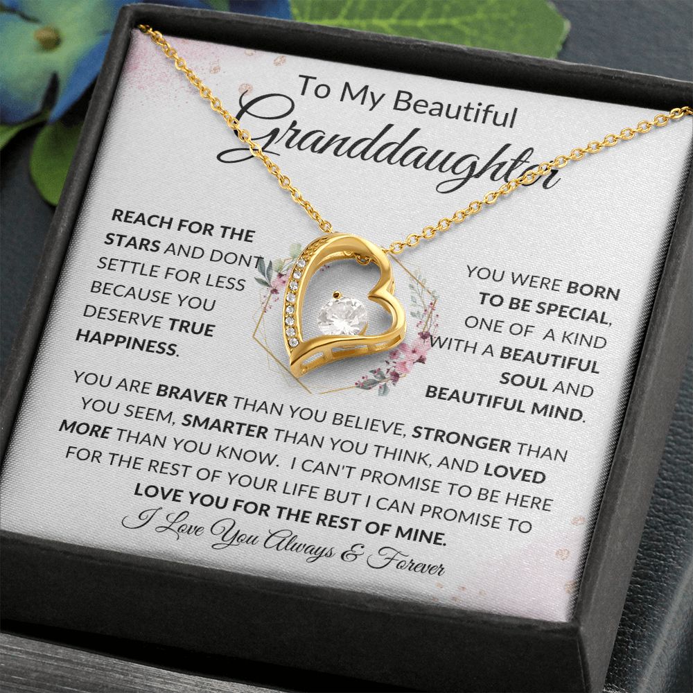 To My Beautiful Granddaughter | Forever Love Necklace White Gold Finish | Braver, Stronger, Smarter