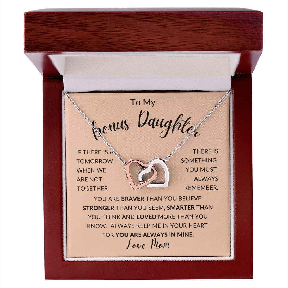 To My Bonus Daughter | Interlocking Hearts necklace | Gift For Daughter, Daughter Necklace, Birthday Gift, To My Daughter Gift