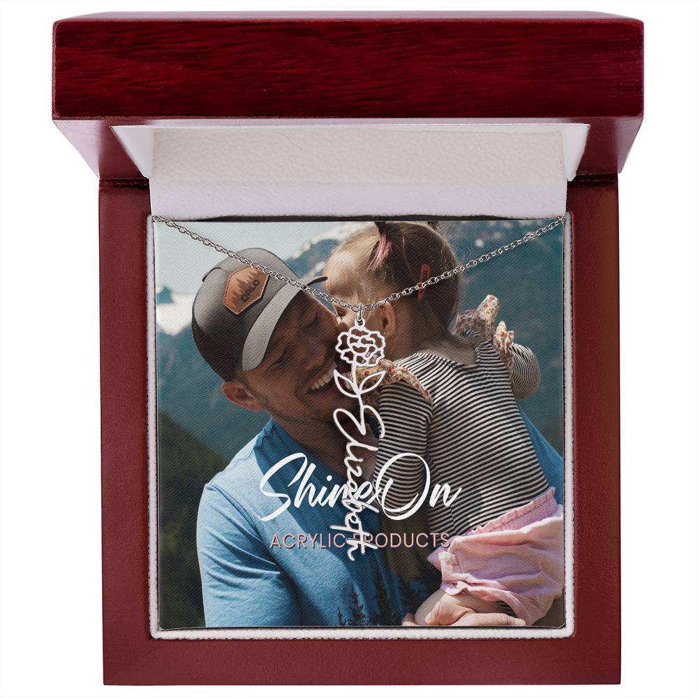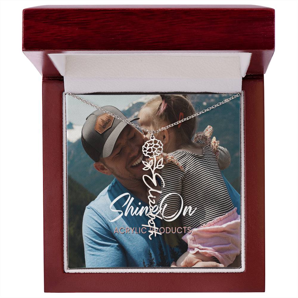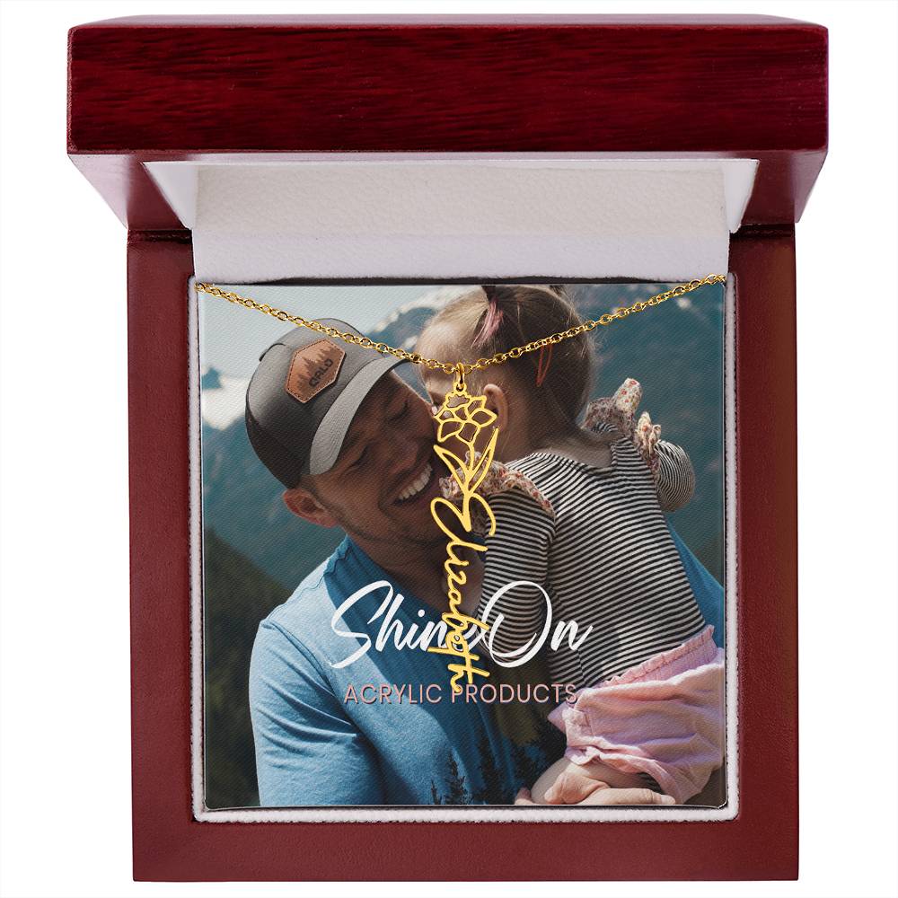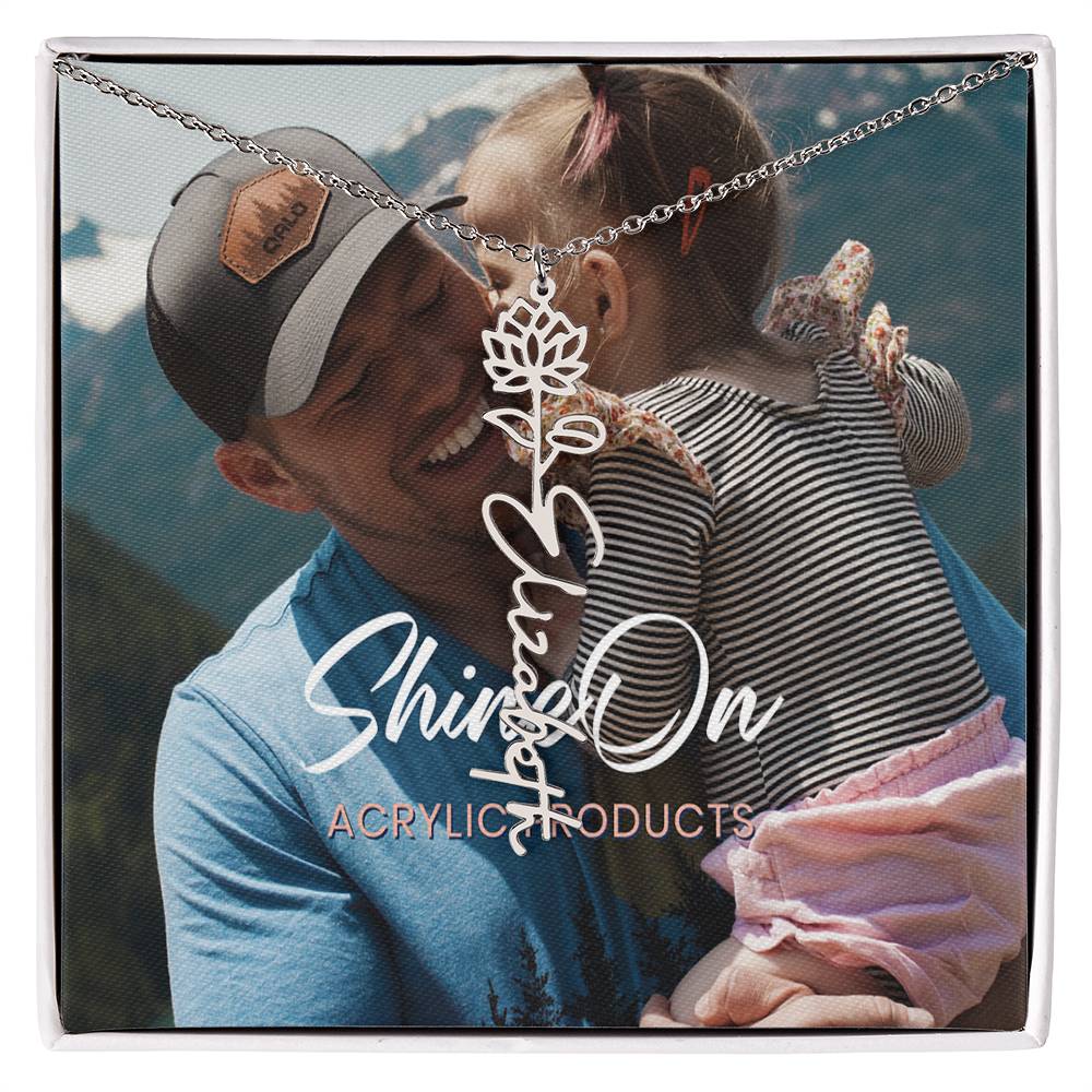 Need a gift that's as unique as she is? Then look no further than our Flower Name Necklace! With a customizable birth flower design, this necklace is a meaningful addition to any jewelry collection. Whether you're dressing up for a special occasion or simply want to add some flair to your everyday look, this necklace is perfect for your special someone. Handcrafted from high-quality materials, it is both stylish and durable. So why wait? Personalize your own floral name necklace today!