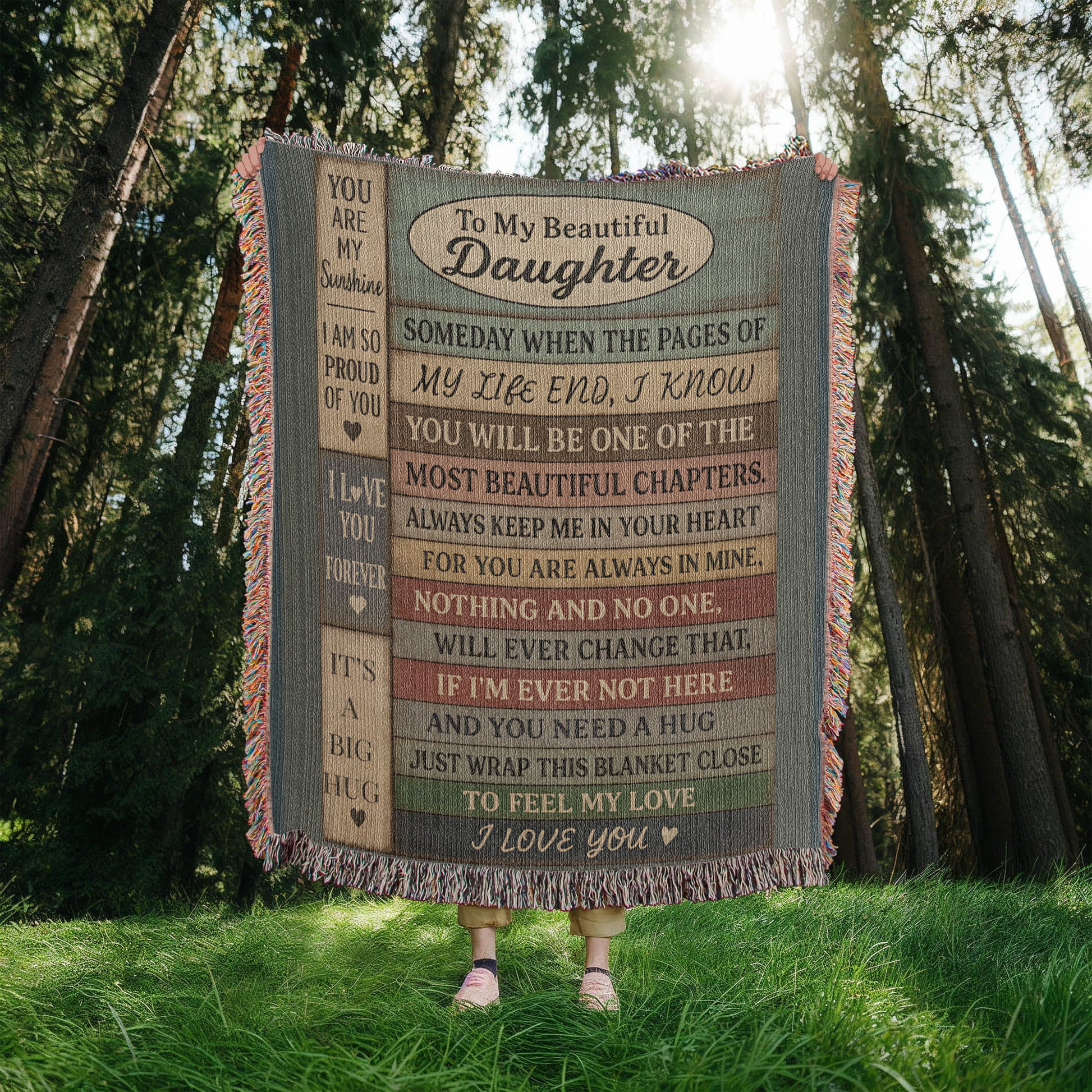 Every plank carries a message of love, reminding your daughter that no matter where life takes her, she is cherished beyond measure. Whenever she feels alone, she can wrap herself in this blanket and feel the warmth of your hug, even from miles away. A gift that turns ordinary nights into lasting memories.