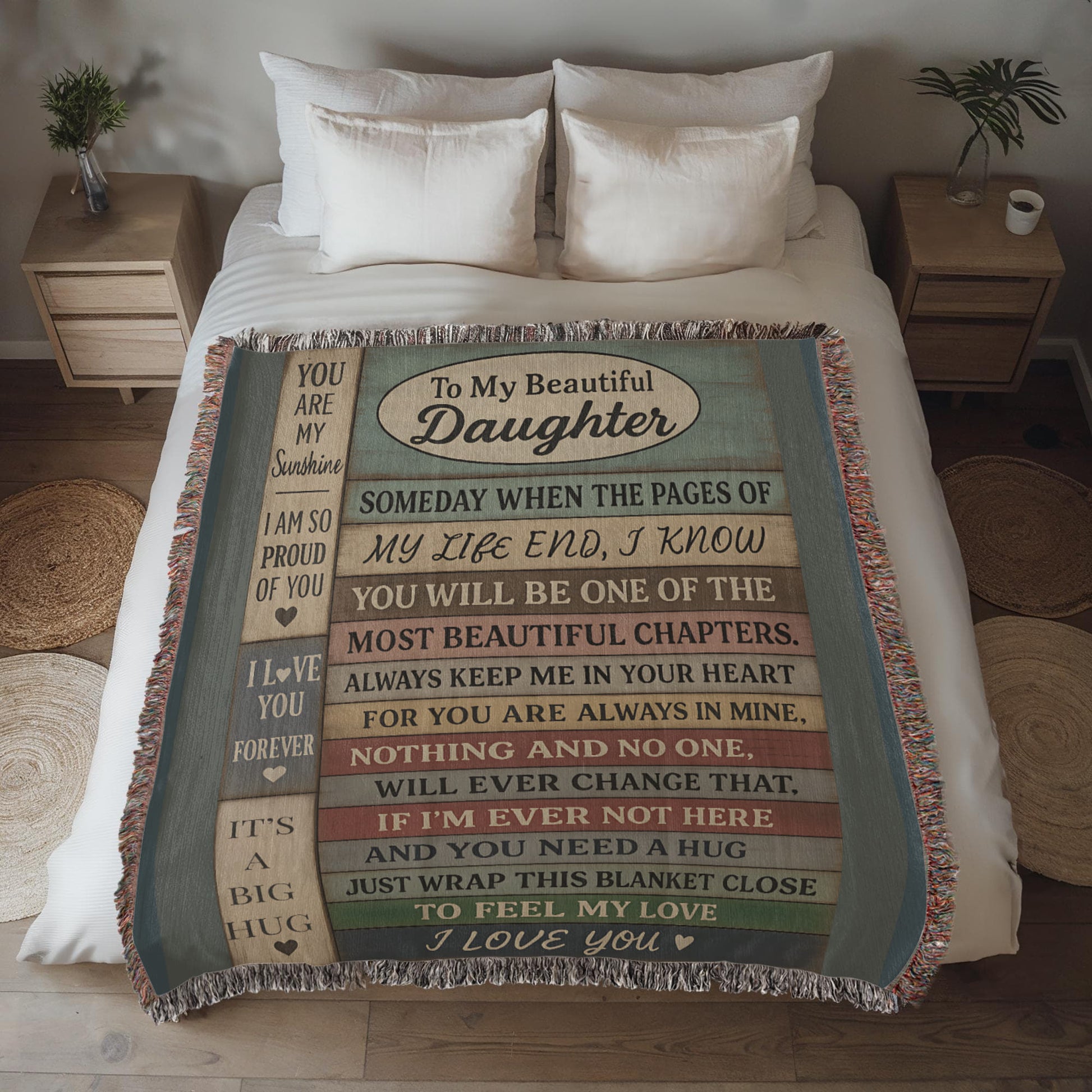 To My Daughter Blanket – Rustic Wood Plank Message – Cozy Woven Gift from Mom or Dad