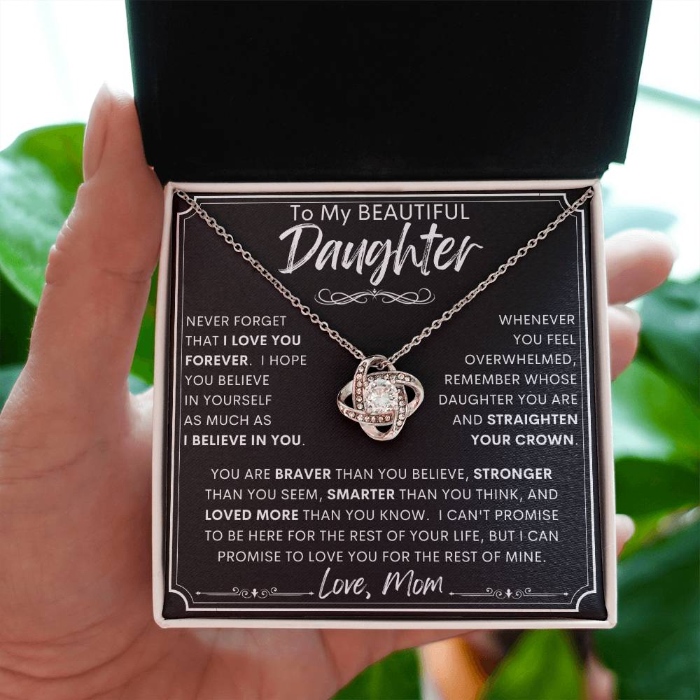 Imagine her reaction receiving this beautiful Love Knot Necklace. Representing an unbreakable bond between two souls, this piece features a beautiful pendant embellished with premium cubic zirconia crystals. Surprise your loved one with this gorgeous gift today!