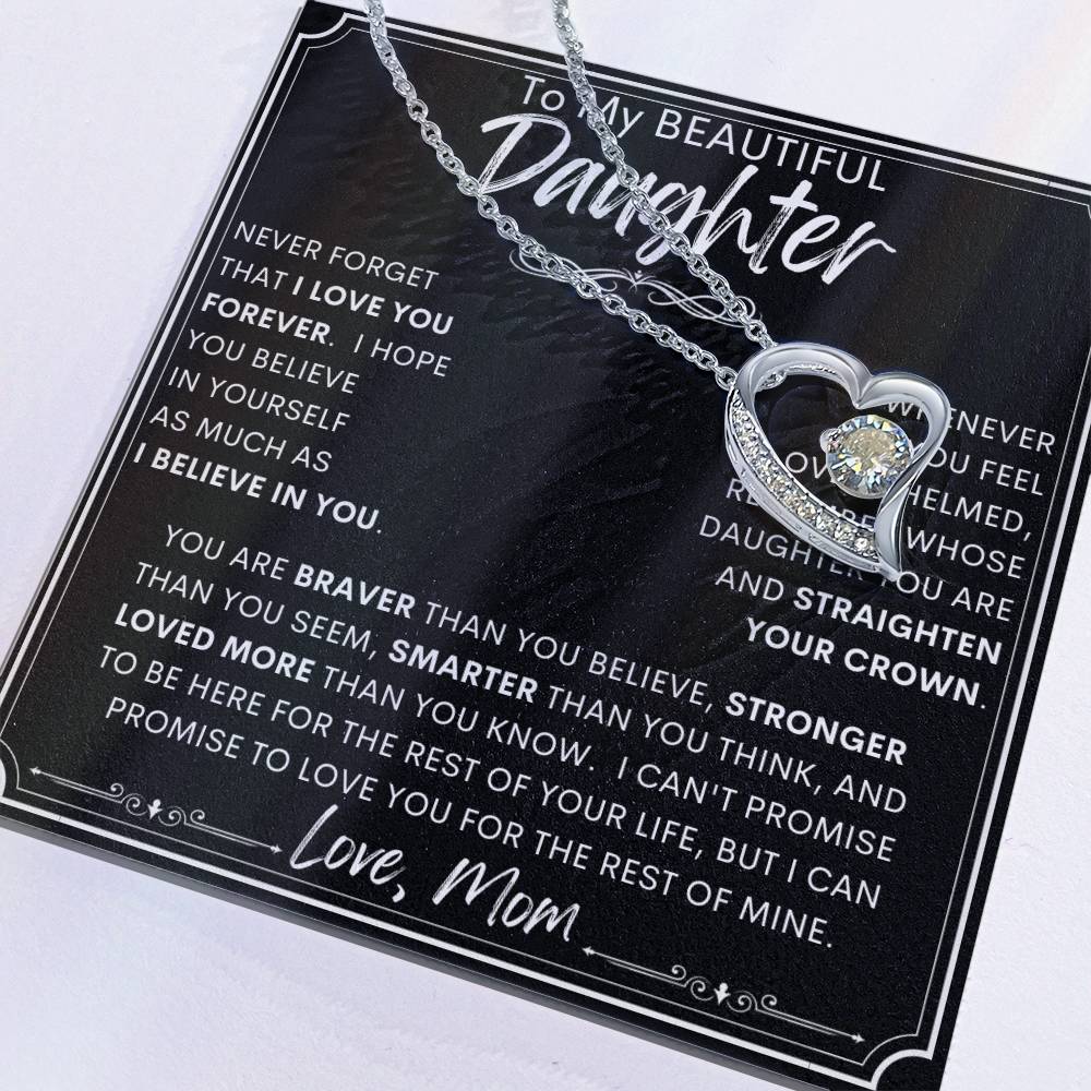 The dazzling Forever Love Necklace is sure to make her heart melt! This necklace features a stunning 6.5mm CZ crystal surrounded by a polished heart pendant embellished with smaller crystals to add extra sparkle and shine. Beautifully crafted with either a white gold or yellow gold finish, be sure to give her a classic gift she can enjoy everyday.