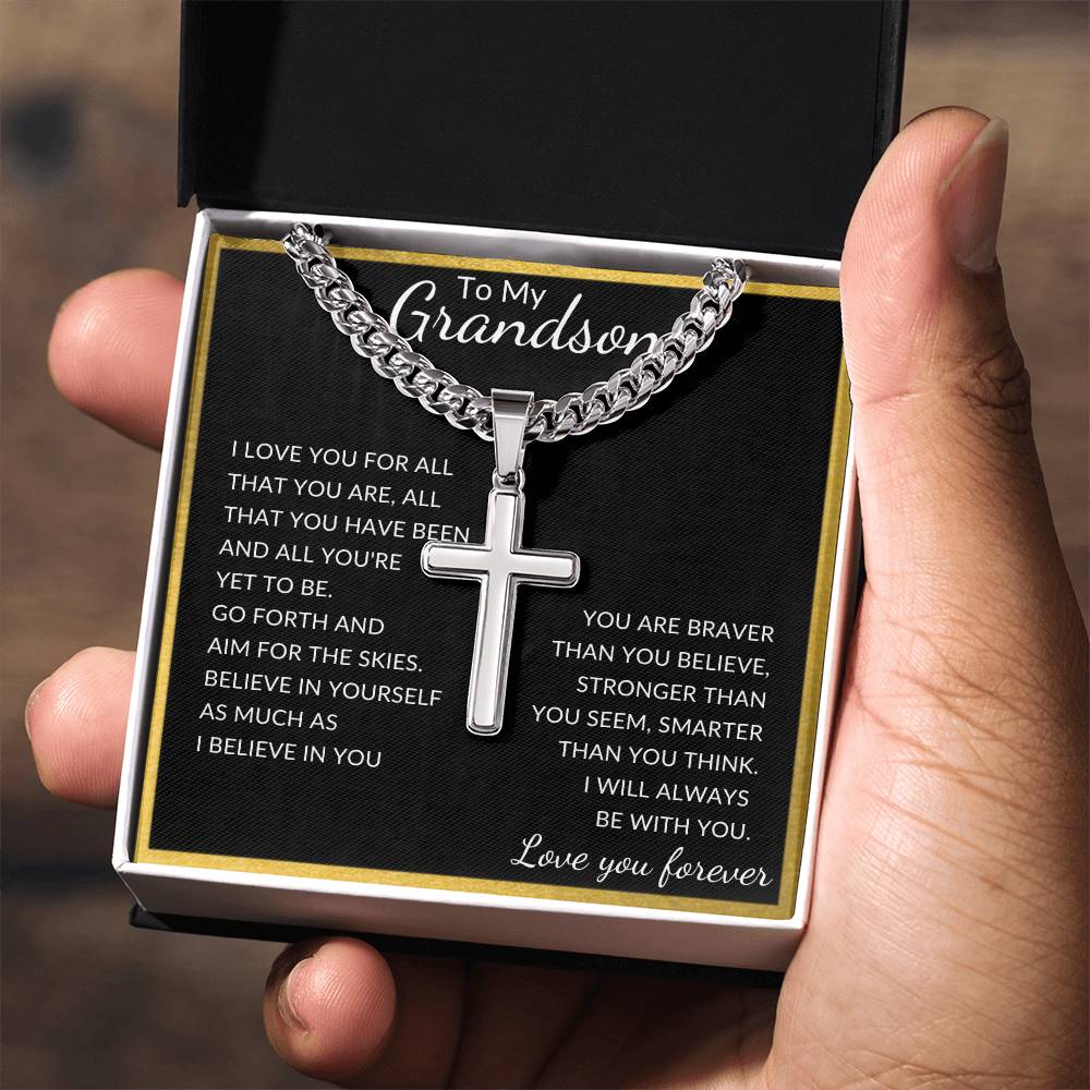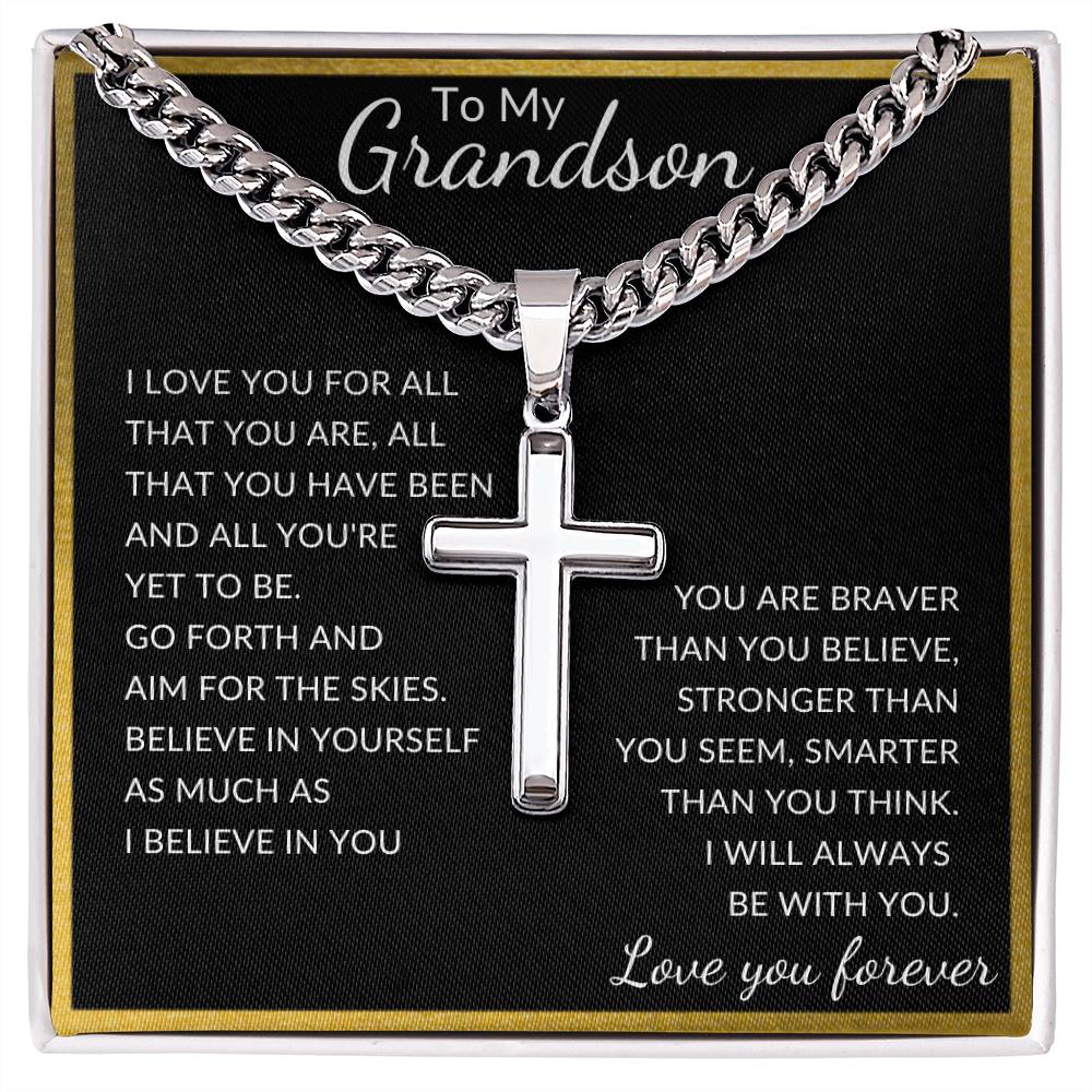 To My Grandson - Cuban Chain with Artisan Cross Necklace