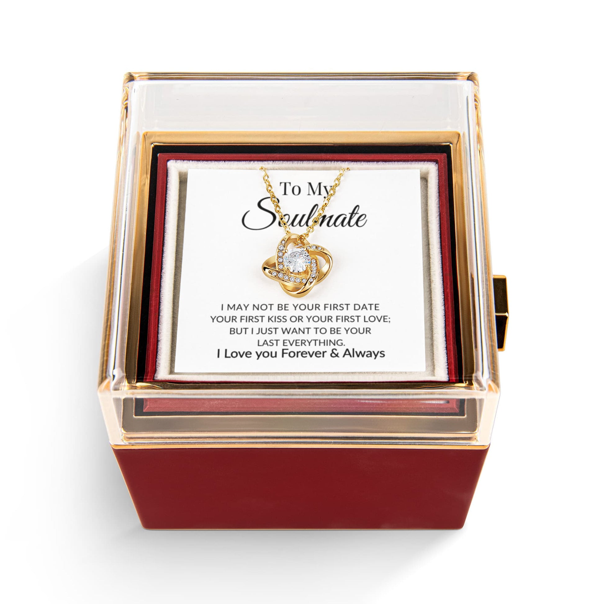 To My Soulmate Love Knot Necklace – Romantic Gift for Her with Preserved Rose Box Surprise